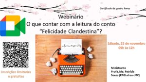 O evento online e gratuito para todo e qualquer interessado tem o objetivo de expor, de maneira dinâmica e interativa, a temática advinda dos conhecimentos acadêmicos que podem levar a leitura eficiente do texto curto clariciano.